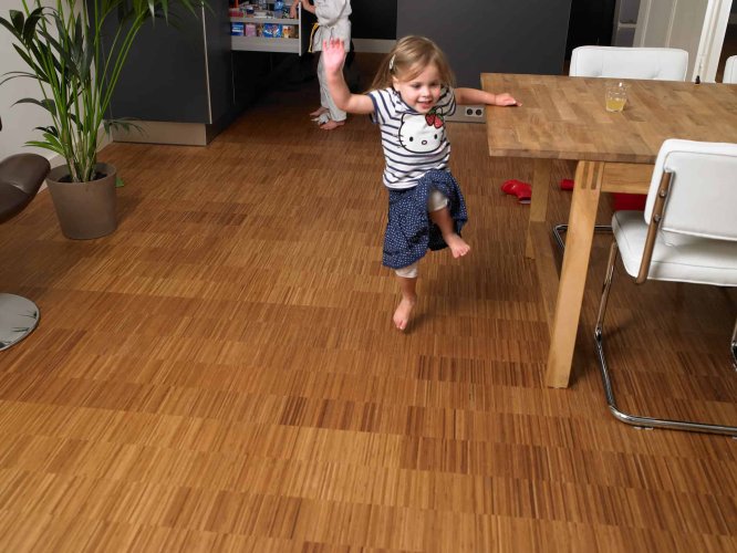 Bamboo Industriale son pequeños paquetes de parquet que están compuestos de tablillas de bambú macizo, creando el aspecto industrial característico. Los “paquetes” son en realidad bloques de tablillas de bambú adosadas con cinta adhesiva (no hay cola en el propio producto).