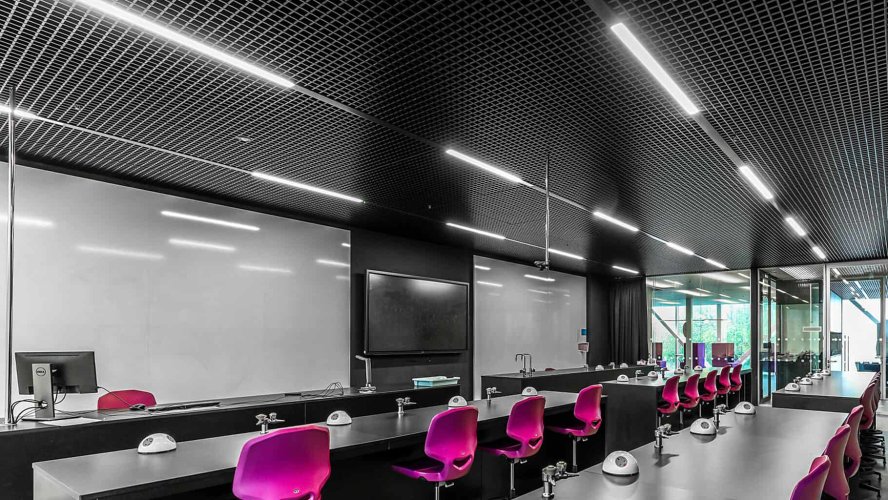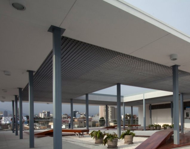 Este tipo de cielo, es ideal para espacios amplios que poseen instalaciones complejas, ya que además de ser liviano, permite una rápida limpieza y disminuye la acumulación de partículas. Proporcionando un manto ligero, que parece en constante ventilación.