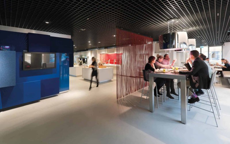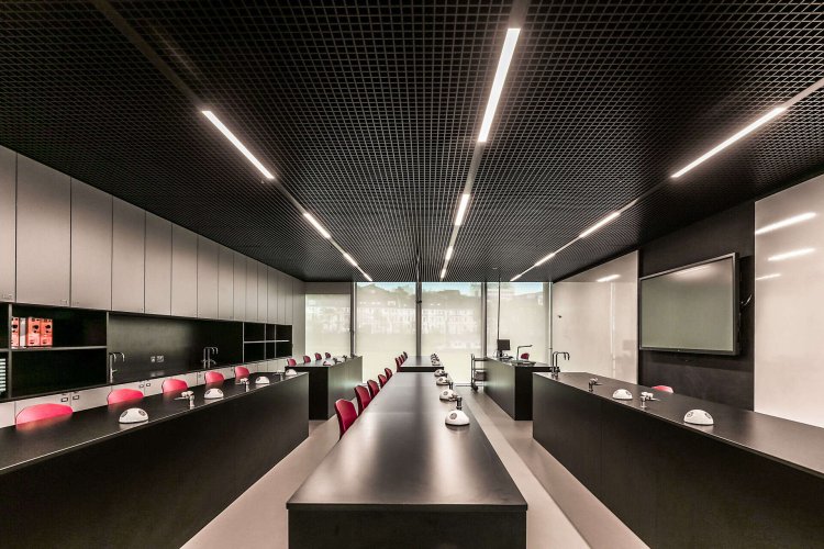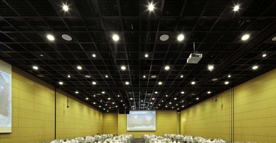 Este tipo de cielo, tiene la particularidad de ser compatible con difusores, sprinkles, luminarias, etc. Por lo que siempre es posible generar nuevas composiciones, abriendo o cerrando espacios según lo requiera el diseño.