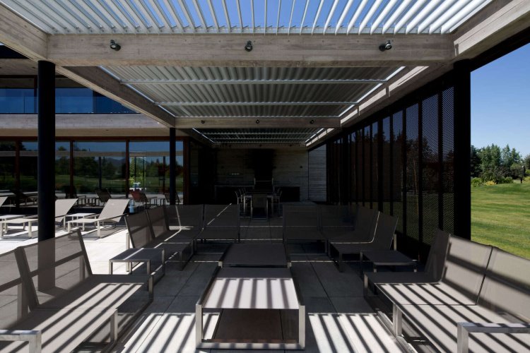 Sistema de quiebravista móvil, utilizado para revestir fachadas o como cortasol cenital. Su principal característica es la solución en la protección solar pasiva, proporcionando un mayor confort y ahorro energético en base a perfiles extruidos de aluminio de una geometría muy atractiva. El sistema está compuesto por un brazo de accionamiento de aluminio que proporciona los distintos movimientos de apertura del quiebravista. Su parte más llamativa es la geometría aerodinámica del aspa (paleta) que en su ángulo más cerrado da la sensación de que fuese una fachada sinuosa. Con el traslapo de las aspas se logra que no penetre la luz o los rayos solares hacia el interior del recinto.