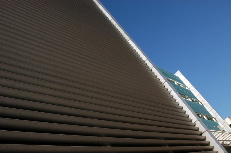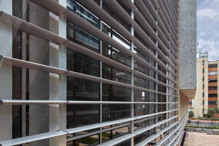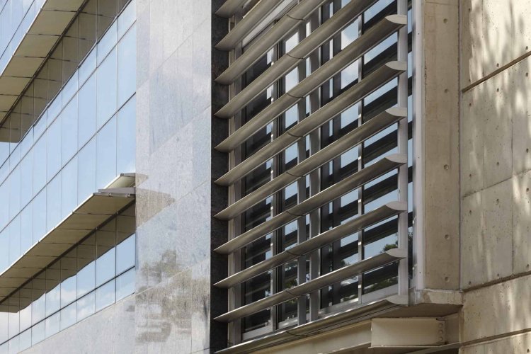 Cortasol lineal que permite regular la transparencia de las fachadas.