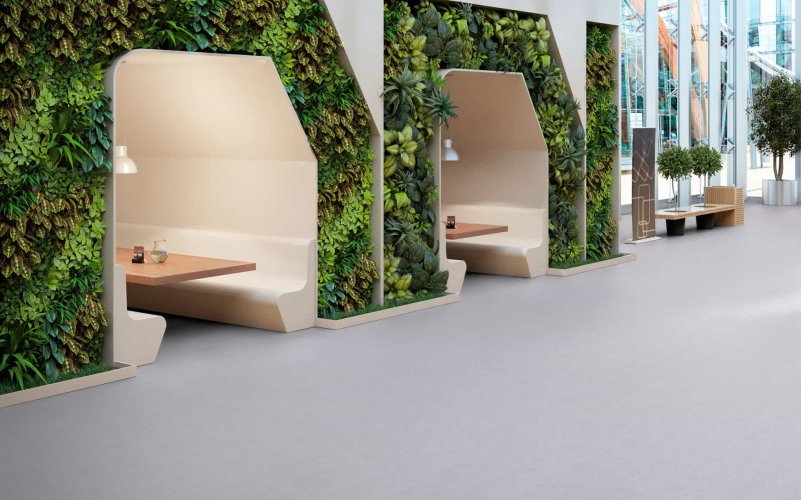 LINÓLEO DLW, Gracias a su acabado mate entregamos diseños naturales y contemporáneos, enfatizado a través de colores profundos y sin reflejos de luz en la superficie. Con una amplia paleta de colores y diseños disponibles entre diseños naturales, veteados y lisos, que pueden potenciar la sostenibilidad y la creatividad de sus proyectos.