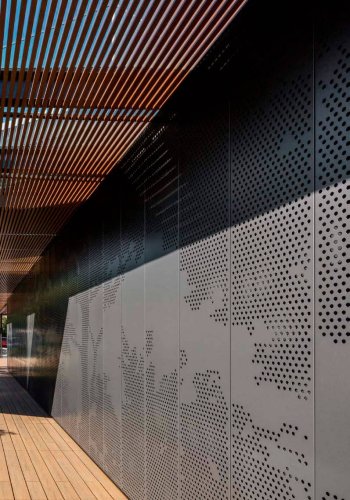 Hunter Douglas con la incorporación de nuevas tecnologías en sus procesos productivos, como el corte láser, abre un abanico de posibilidades de combinación que permite customizar al máximo la visión que tiene el arquitecto al momento de realizar el diseño de su proyecto, pudiendo combinar, incluso, estas en un panel Geoclad, mezclando infinitas geometrías con la opción de añadir secciones abiertas al incluir tecnología de corte láser, en un solo producto terminado, con un resultado asombroso.
