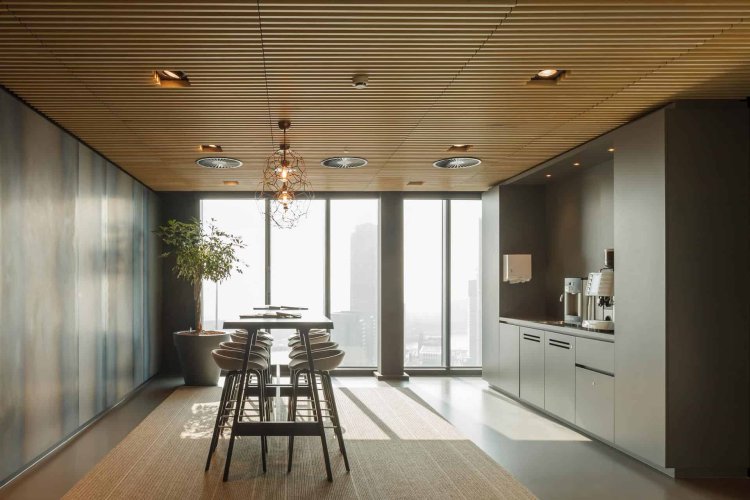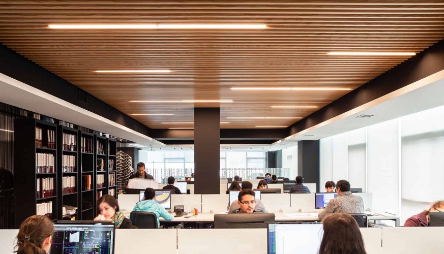 Efecto de listonado continuo: Los paneles se instalan uno al lado del otro, creando un efecto continuo que aporta elegancia y sofisticación a cualquier ambiente. - Funcionalidad: Además de su valor estético, los cielos Woodlines también son funcionales. Ayudan a reducir el ruido, mejorar la acústica y ocultar imperfecciones en la superficie del techo.