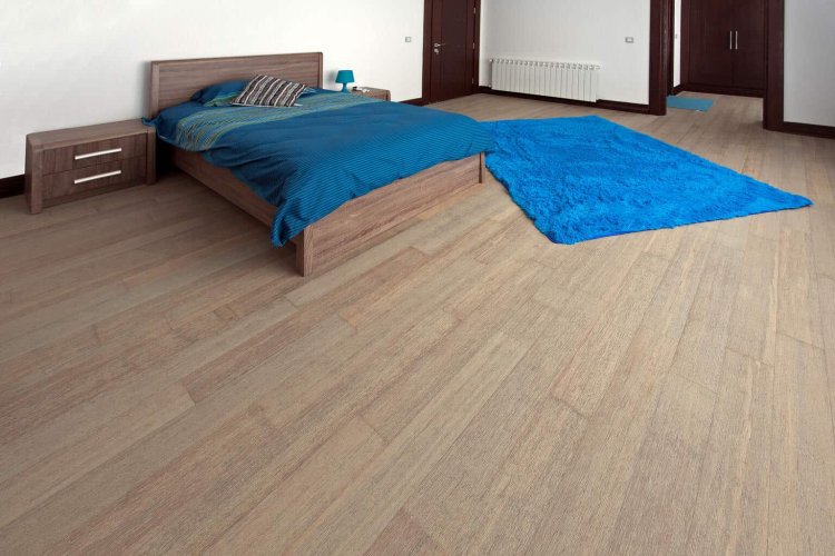 Piso de madera de fácil instalación con una capa superior de bambú y un sistema de clic.
