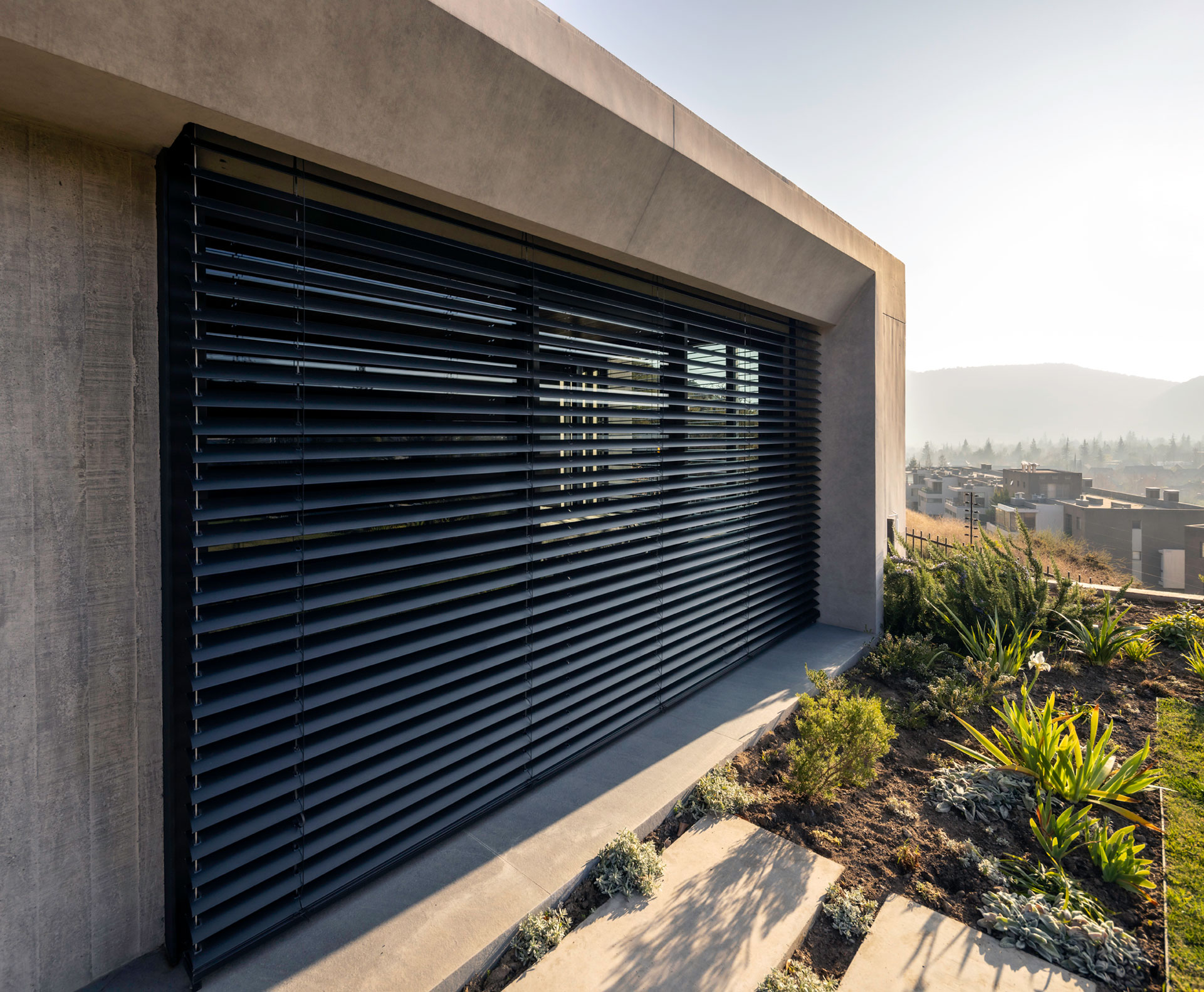 Producto: 80 mm – Fins Accionable –(Módulo 250mm, Aluzinc 0,8mm, pintura poliéster, color Negro Oscuro, Accionamiento Motorizado con Domótica)